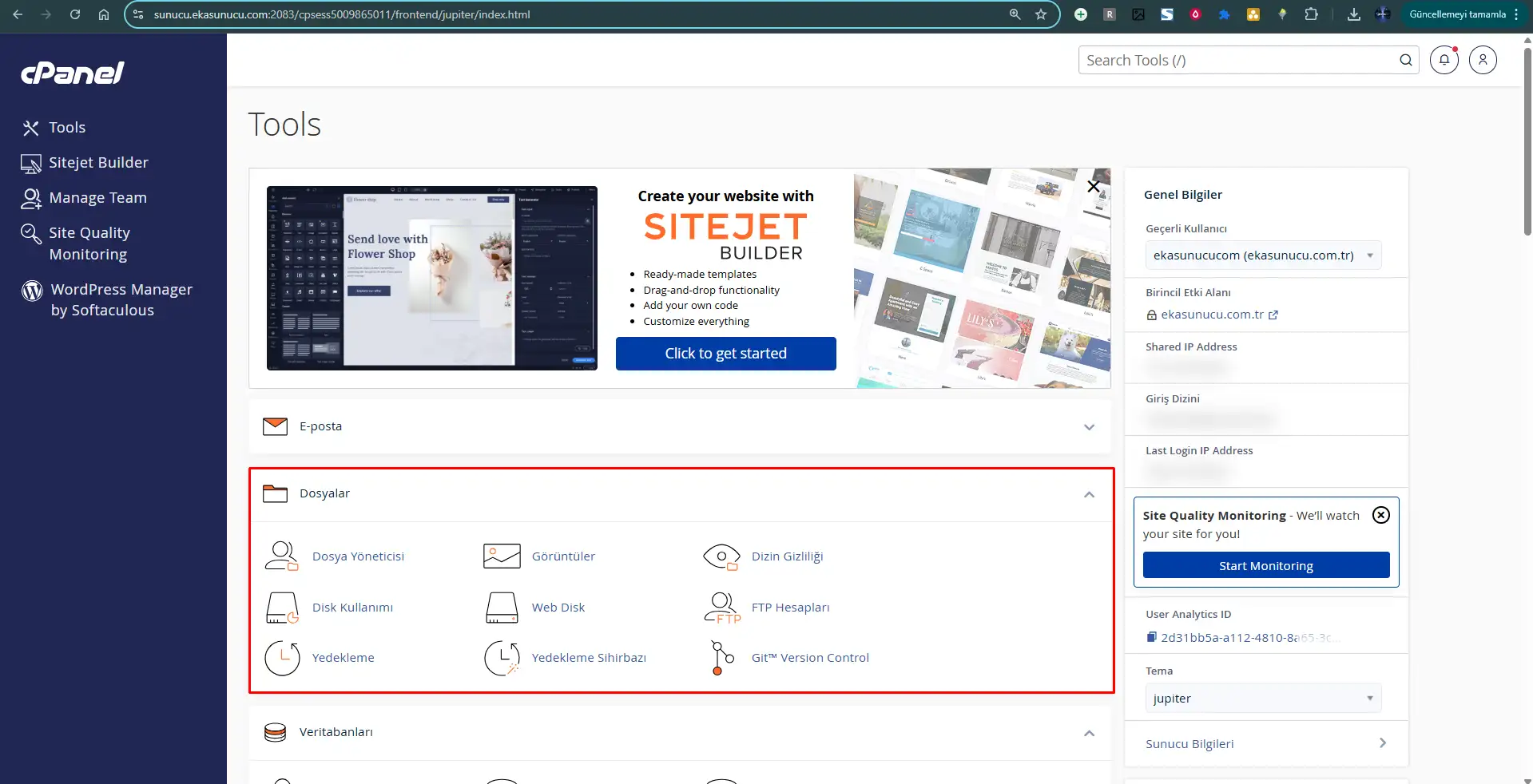 3 dakika okuma Eka YazılımonMart 27, 20250 cPanel Kullanım Rehberi (2025): Web Hosting Yönetiminin Anahtarı Web sitenizi internete açtıktan sonra karşılaşacağınız en temel araçlardan biri cPanel olacaktır. Bu panel, sadece teknik bilgisi olanlar için… Devamını Oku