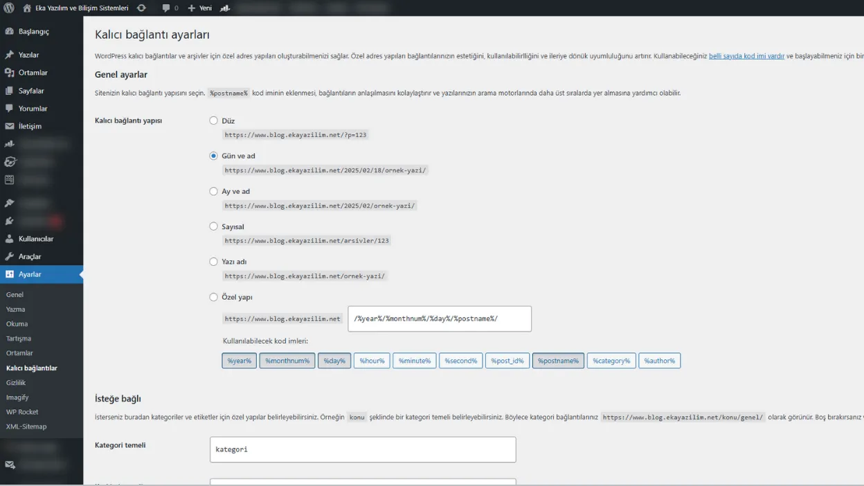 WordPress Optimizasyon ve SEO Kalıcı Bağlantılar (Permalinks) SEO Uyumlu URL Yapıları WordPress Ayarları WordPress SEO3 dakika okuma Eka YazılımonŞubat 17, 20250 WordPress Kalıcı Bağlantılar (Permalink) Ayarları: options-permalink.php Detaylı Rehber Kalıcı Bağlantılar (Permalink) Nedir? Kalıcı bağlantılar (permalinks), web sitenizdeki içeriklere ulaşmak için kullanılan URL yapılarıdır.… Devamını Oku